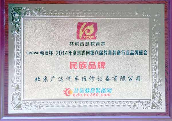 2015民族品牌證書(shū)